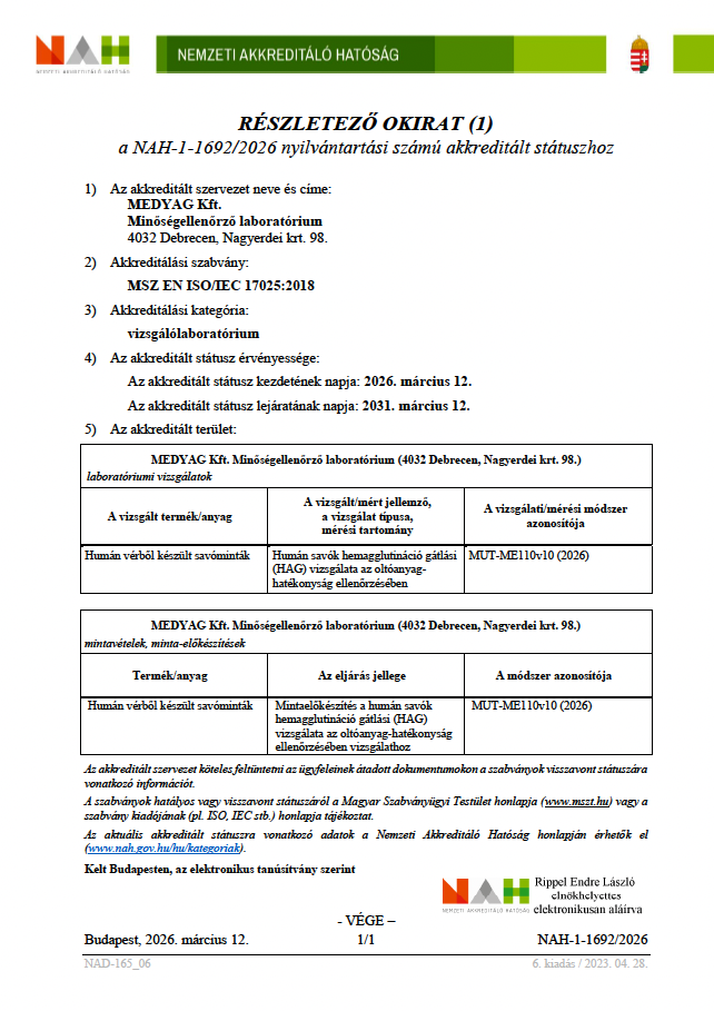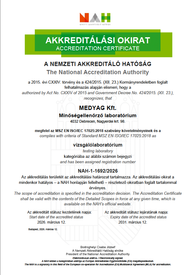 MEL akkreditálási okirat Minőségellenőrző Laboratórium akkreditálási okirat: Minőségellenőrző Laboratórium részletező okirat: